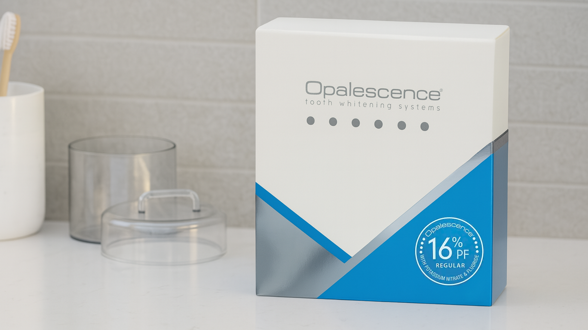 Opalescence and Philips Zoom are at-home whitening gels with active ingredients like carbamide or hydrogen peroxide. Both are intended for adult use.